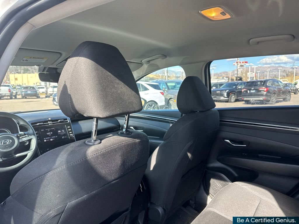 Option Group 01, Hyundai Certified Used Vehicles Certified, I4, 3.32 Axle Ratio, 4-Wheel Disc Brakes, 6 Speakers, ABS brakes, Air Conditioning, Alloy wheels, AM/FM radio: SiriusXM, Apple CarPlay & Android Auto, Auto High-beam Headlights, Automatic temperature control, Brake assist, Bumpers: body-color, Delay-off headlights, Driver door bin, Driver vanity mirror, Dual front impact airbags, Dual front side impact airbags, Electronic Stability Control, Emergency communication system: Blue Link Connected Car Service (3-year complimentary subscription), Four wheel independent suspension, Front anti-roll bar, Front Bucket Seats, Front Center Armrest, Front dual zone A/C, Front reading lights, Fully automatic headlights, Heated door mirrors, Heated Front Bucket Seats, Heated front seats, Illuminated entry, Low tire pressure warning, Occupant sensing airbag, Outside temperature display, Overhead airbag, Overhead console, Panic alarm, Passenger door bin, Passenger vanity mirror, Power door mirrors, Power driver seat, Power Liftgate, Power steering, Power windows, Radio data system, Radio: AM/FM/HD/SiriusXM Audio System, Rear anti-roll bar, Rear seat center armrest, Rear window defroster, Rear window wiper, Remote keyless entry, Security system, Speed control, Split folding rear seat, Spoiler, Stain & Odor Resistant Cloth Seat Trim, Steering wheel mounted audio controls, Tachometer, Telescoping steering wheel, Tilt steering wheel, Traction control, Trip computer, Turn signal indicator mirrors, Variably intermittent wipers, and Wheels: 17" x 7.0J" Alloy.