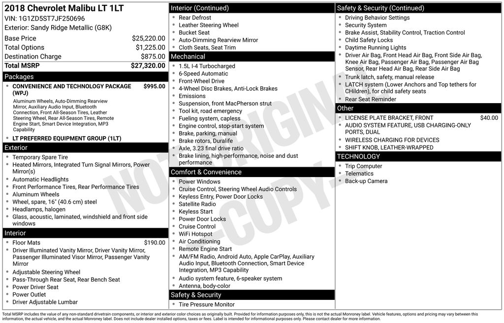 Odometer is 1851 miles below market average! Sandy Ridge Metallic 2018 Chevrolet Malibu LT FWD 6-Speed Automatic 1.5L DOHC 27/36 City/Highway MPG