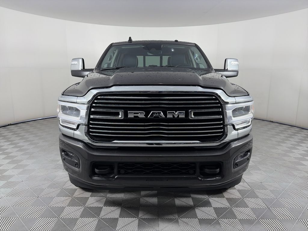 ENGINE: 6.7L I6 CUMMINS TURBO DIESEL Selective Catalytic Reduction (Urea), Dual 730 Amp Maintenance Free Batteries, Cummins Turbo Diesel Badge, Heavy Duty Engine Cooling, Supplemental Heater, 220 Amp Alternator, Tow Hooks, Diesel Exhaust Brake, Front Bumper Sight Shields, Capless Fuel Fill w/o Discriminator, SAFETY GROUP Auto High Beam Headlamp Control, Blind Spot & Cross Path Detection, Rain Sensitive Windshield Wipers, Adaptive Cruise Control w/Stop, Adaptive Steering System, Full Speed Forward Collision Warning Plus, Lane Keep Assist, LARAMIE LEVEL 1 EQUIPMENT GROUP Blind Spot & Cross Path Detection, LED Tail Lamps, Power Adjustable Pedals w/Memory, For Details, Visit DriveUconnect.com, For More Info, Call 800-643-2112, 12 Touchscreen Display, Auto Power-Folding Mirrors, Front LED Fog Lamps, Mirror Running Lights, Alexa Built-In, Power Adjustable Convex Aux Mirrors, Forward & Reverse Utility Lights, Disassociated Touchscreen Display, Remote Tailgate Release, Center Hub, 2nd Row In Floor Storage Bins, Rear Window Defroster, Rain Sensitive Windshield Wipers, Rear Power Sliding Window, GPS Navigation, Auto Dim Exterior Mirror, SiriusXM w/360L, Connected Travel & Traffic Services, LED Reflector Headlamps, Foam Bottle Insert (Door Trim Panel), Off-Road Information Pages, Selectable Tire Fill Alert, Trailer Tow Pages, HD, TRANSMISSION: 6-SPEED AUTOMATIC (68RFE). Ram Laramie with Granite Crystal Metallic Clearcoat exterior and Black interior features a Straight 6 Cylinder Engine with 410 HP at 5600 RPM*.
