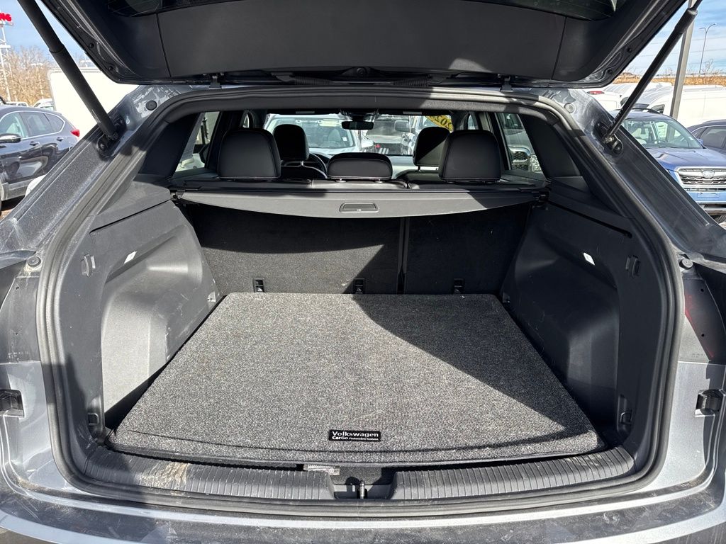 3.60 Axle Ratio, 4-Wheel Disc Brakes, 4-Wheel Independent Suspension, 6 Speakers, ABS brakes, Air Conditioning, Alloy wheels, AM/FM radio: SiriusXM with 360L, Auto-dimming Rear-View mirror, Automatic temperature control, Brake assist, Bumpers: body-color, Compass, Delay-off headlights, Driver door bin, Driver vanity mirror, Dual front impact airbags, Dual front side impact airbags, Electronic Stability Control, Emergency communication system: VW Car-Net Safe & Secure 5-year, Exterior Parking Camera Rear, Four wheel independent suspension, Front anti-roll bar, Front Bucket Seats, Front Center Armrest, Front dual zone A/C, Front fog lights, Front reading lights, Fully automatic headlights, Heated & Actively Ventilated Front Seats, Heated door mirrors, Heated front seats, Heated steering wheel, Heavy Duty Trunk Liner w/VW CarGo Blocks, Illuminated entry, Low tire pressure warning, Monster Mats Rubber Mats (Set of 4), Occupant sensing airbag, Outside temperature display, Overhead airbag, Overhead console, Panic alarm, Passenger door bin, Passenger vanity mirror, Perforated V-Tex Leatherette Seating Surfaces, Power door mirrors, Power driver seat, Power steering, Power windows, Privacy Cover, Radio data system, Radio: MIB3 Composition Media AM/FM/HD, Rain sensing wipers, Rear anti-roll bar, Rear reading lights, Rear seat center armrest, Rear window defroster, Rear window wiper, Remote keyless entry, Rubber Mats Kit, Security system, Speed control, Speed-sensing steering, Split folding rear seat, Spoiler, Steering wheel mounted audio controls, Tachometer, Telescoping steering wheel, Tilt steering wheel, Traction control, Trip computer, Turn signal indicator mirrors, Variably intermittent wipers, Ventilated front seats, and Wheels: 18" 5-Spoke 2-Tone Machined Alloy.